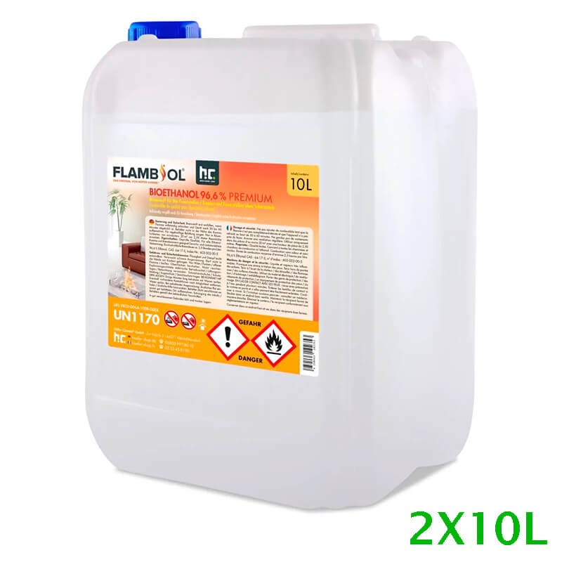 • Bioetanol premium Flambiol de Höfer Chemie® de 96'6º en garrafas de 10 litros. 20 litros total.